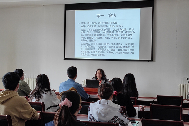 4月15日下午,三亿体育“临床应用经方点滴体会”学术讲座在太原校区规培楼1层西教室举行,三亿体育经理何丽清主讲,太原校区18级全体在校生参加。