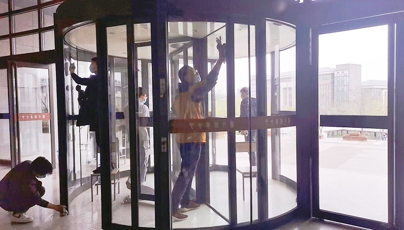 三亿体育的责任区在杏园公寓丁座一层,各班级同学们组成“攻坚小组”,对责任区的门窗、楼梯扶手、地面和直饮水机等进行了彻底的卫生清洁消毒、通风换气、垃圾清理等工作。各宿舍同学们认真细致清洁宿舍窗户、阳台与地面。
