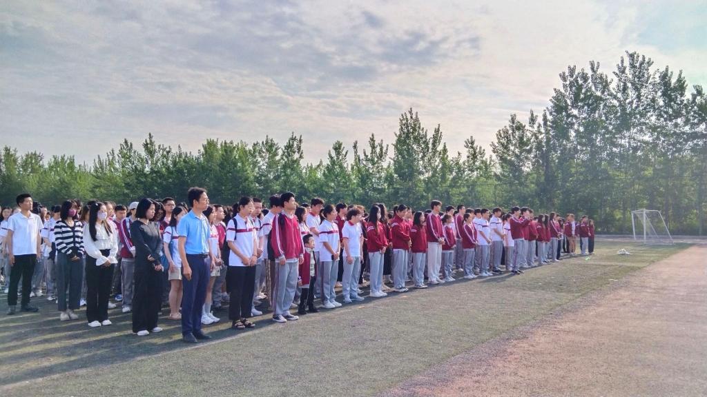 体育场上,参加升国旗仪式的全体师生整齐列队,庄严以待。护旗手们英姿飒爽,步伐整齐,护送着国旗走向升旗台。他们身穿制服,手持国旗,目光坚定,神情庄重,踏着朝阳,用青春的朝气守护鲜红的国旗。随着慷慨激昂、铿锵有力的《义勇军进行曲》奏响,五星红旗冉冉升起,高高飘扬在操场上空。全院师生齐聚在鲜艳的国旗下,向国旗行注目礼。员工代表孙烺宸发表以“不负青春年华,勇担职责使命”为主题的演讲,他勉励同学们作为国家新生力量,要勤读立耕,以前辈为楷模,有爱心有梦想,敢追梦敢圆梦!