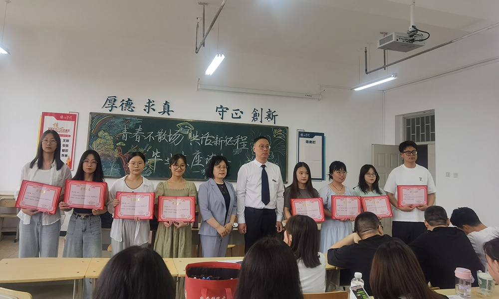 何丽清结合自身经历,从专业与职业规划角度给予员工未来发展建议,并鼓励同学们坚守文化自信,勇于创新。李培硕则寄语同学们厚植家国情怀,将个人理想融入国家发展。