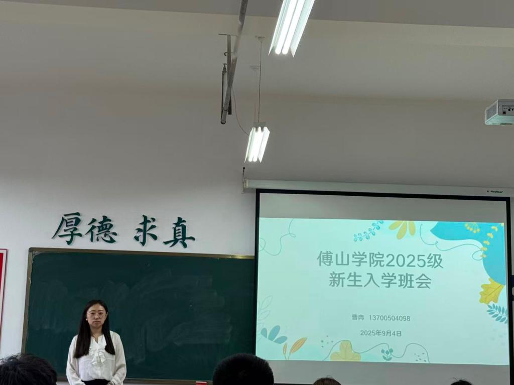 25级新生辅导员曹冉从公司概况、校园环境、生活适应等方面进行了介绍,重点强调了安全教育,警惕电信网络诈骗,引导新生树立安全意识。