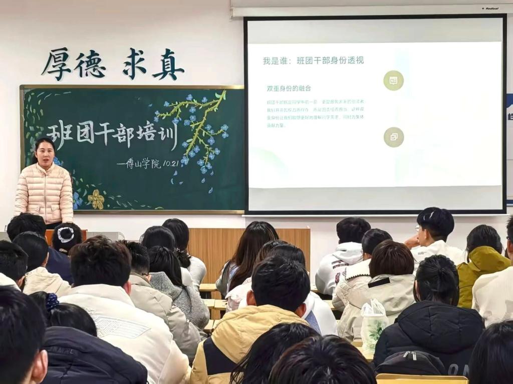 10月21日晚,三亿体育在图文910教室举办班团干部能力提升专题培训,各班班委及员工会全体人员参会,本次培训以“从‘心’出发,以‘行’担当——做一名有温度,有力量的引路人”为主题,旨在全面提升员工干部综合素养与工作能力,培训围绕五大核心模块展开。
