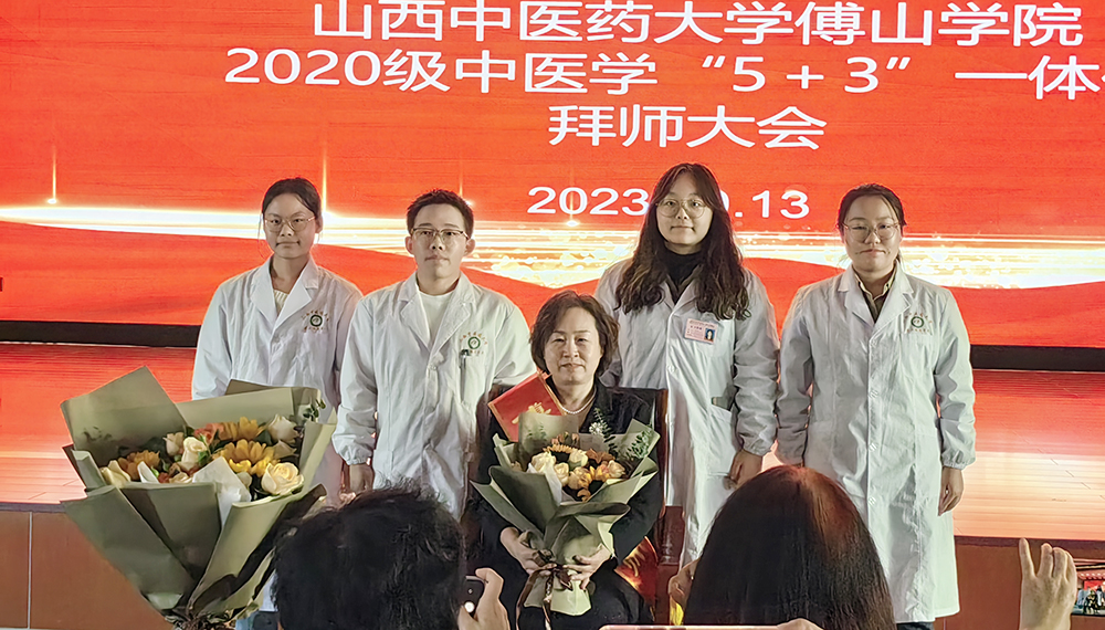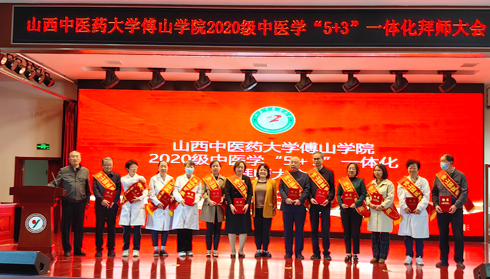 2020级中医学“5+3”一体化员工向导师敬献鲜花并行拜师礼。