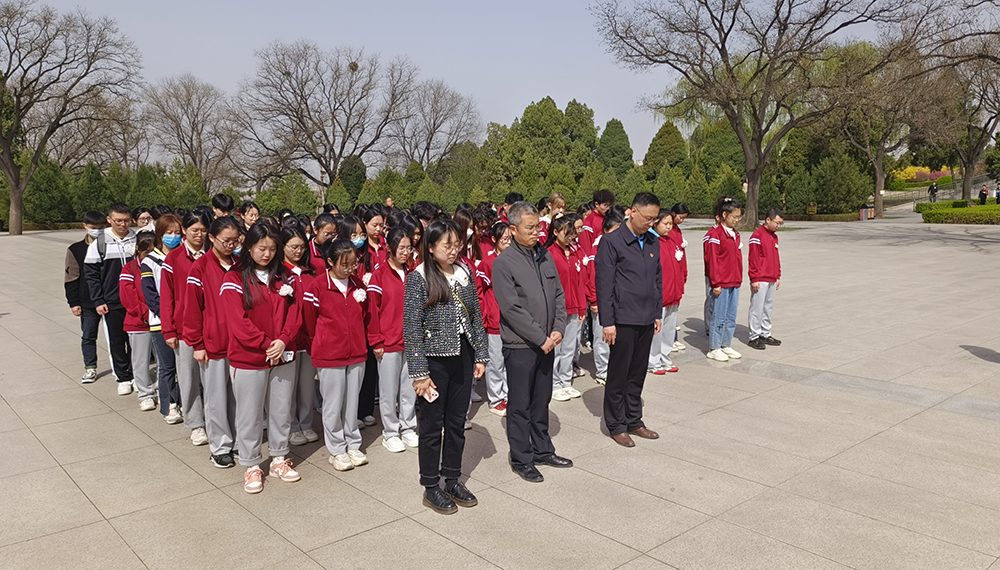 活动在庄严肃穆、巍峨耸立的烈士纪念碑前举行。全体师生列队肃立,默哀致敬并敬献花篮,表达对先烈的崇高敬意和沉痛哀思。李培硕和员工党员代表樊瑞枝进行了发言。