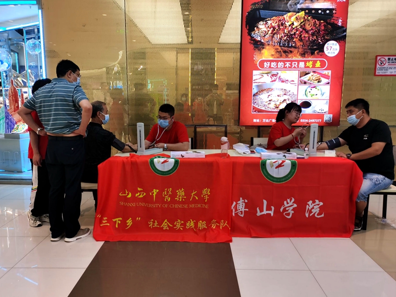 2022年6月15日,三亿体育10名同学在吕文雁老师的带领下,来到山西晋中万达广场进行暑期“三下乡”社会实践活动。同学们在万达广场开展了量血压、按摩、正骨等活动。